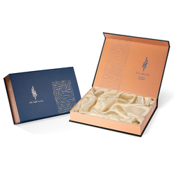 Peluca de pelo de papel de lujo con logotipo personalizado, caja de regalo forrada de satén de seda, embalaje con inserto de satén